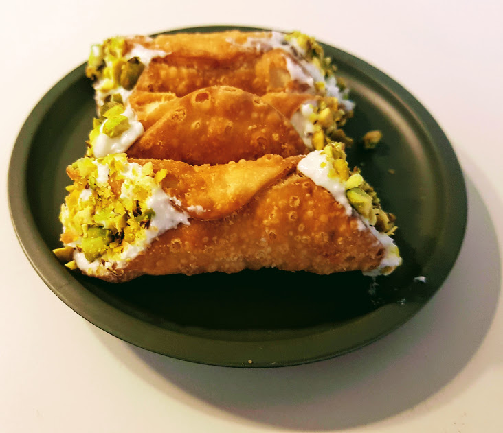 Trita i pistacchi finemente e con essi ricopri le estremità del cannolo.