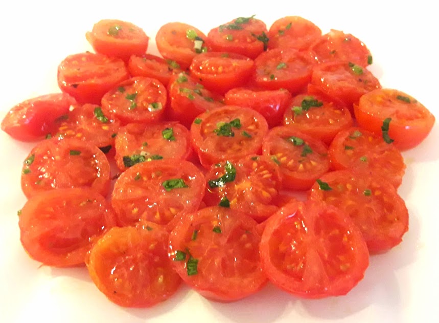 Pomodorini tipo datterini, prezzemolo, aglio, olio extraverginee d'oliva, sale e pepe
