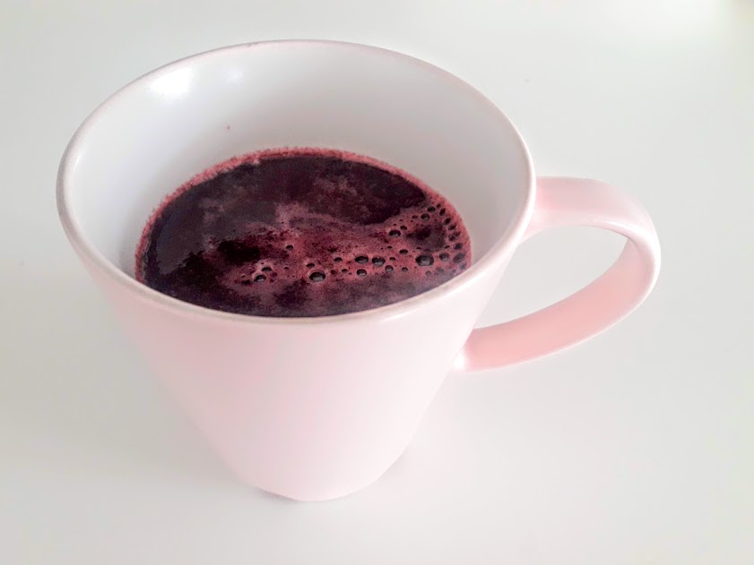 Lava l'uva e separa gli acini dal raspo, sbuccia la mela e versa tutta la frutta in una centrifuga; in pochi secondi il succo è disponibile.