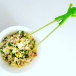 Ultimiamo il piatto versando le noci, il bacon caldo caldo e una manciata di prezzemolo tritato.